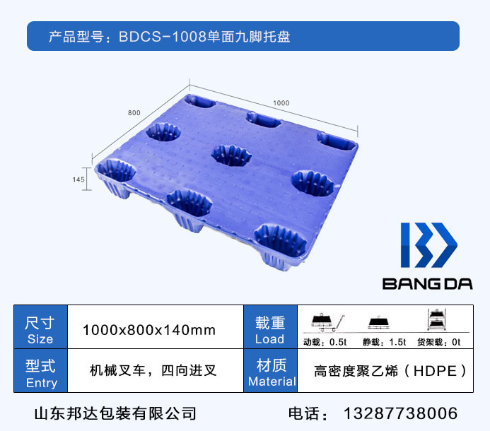 3、九腿托盤適用于各種卡車運輸,便于物料的集裝箱化、單元化運輸;